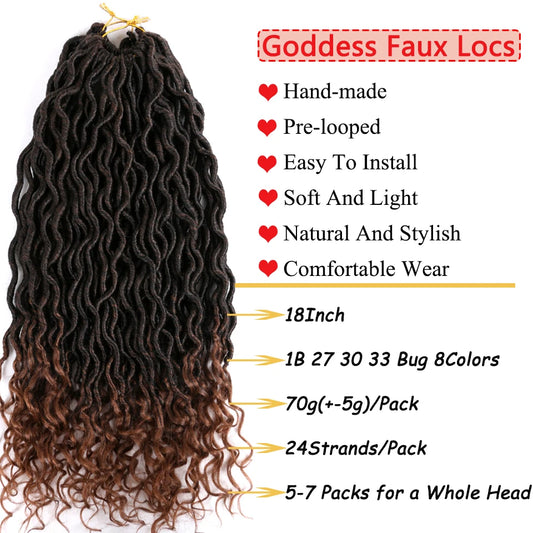 1-6 Packs Goddess Faux Locs Crochet Hair 18 Inch Curly Hair Faux Locs Crochet Braids Synthetic Braids Crochet Hair 24Strands/Pcs