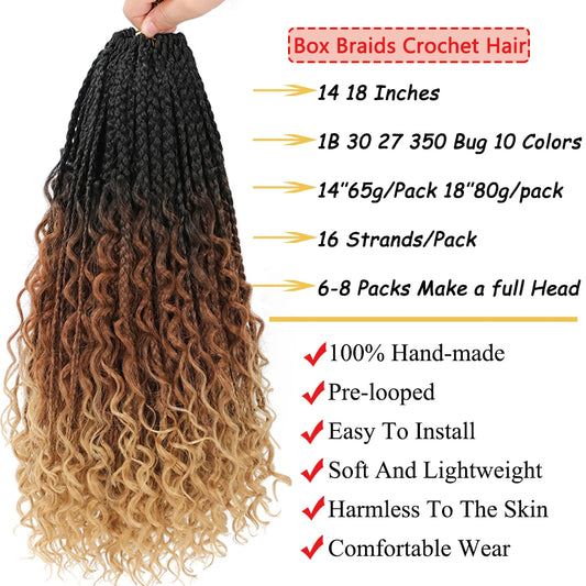 1- 6 Packs Ombre Box Braids Crochet Hair 14 18 inch Boho Goddess Box Braids Crochet Hair With Curly Ends 3X Synthetic Braid Hair