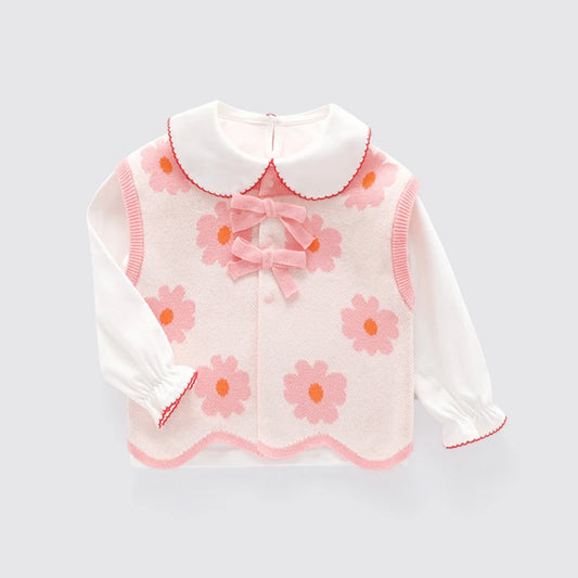 Knitted Beautiful pink Cherry Blossoms Sweater 100%cotton Newborn Baby Clothes Cardigan Vest