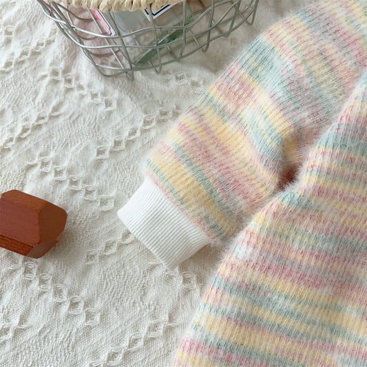 New Baby Casual Wear Sets Rainbow Patchwork Pullover with Top and Bottom for Boys and Girls Spring Autumn Infant Outfit
