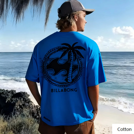 Surf - Trendy - Themed Crew Neck T - Shirt Showcasing A Distinctive Palm Tree - Surf - Design Autumn and Winter Large Loose