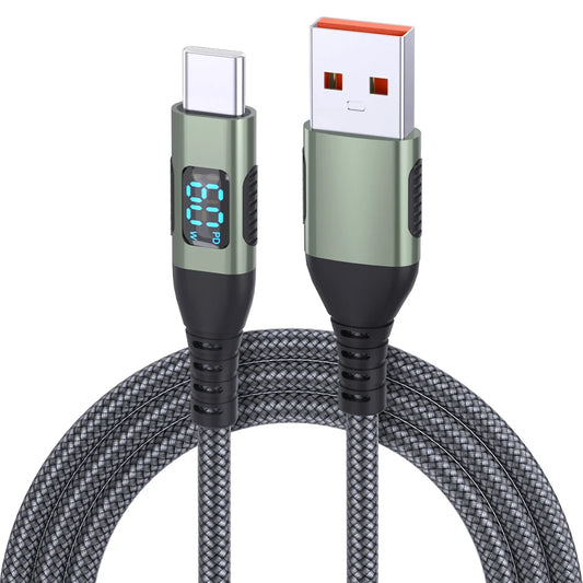 1m 2m 3m Nylon Braided USB to Type-C LED Digital Display Port 60w Usb c Fast Charging Phone Cable for Cellphones