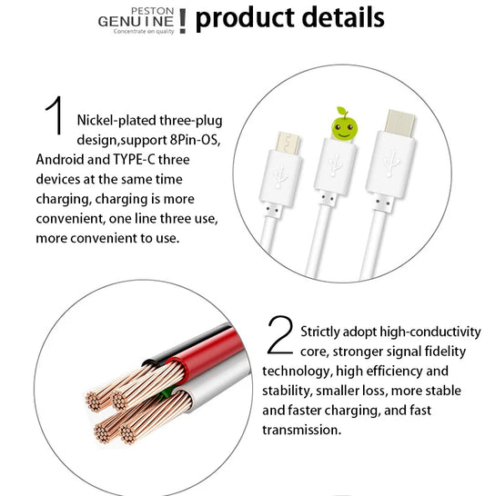 EONLINE Hot Sale 3 in 1 Charger Cable Micro USB Type C Multi USB Port Charging Cable USB Phone Cable