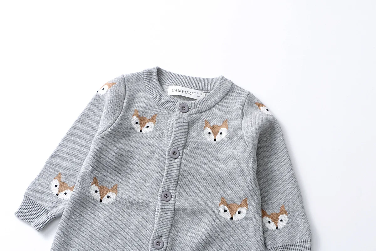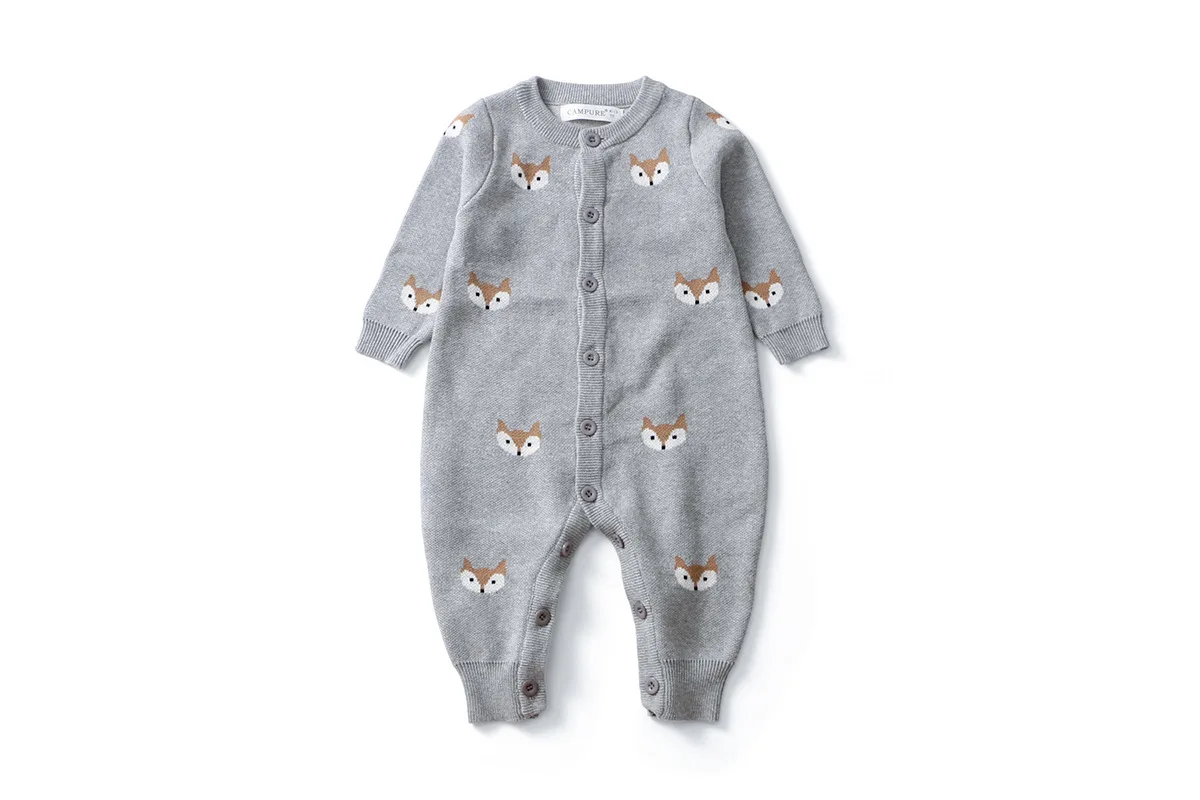 0-3 Y Baby Clothes Single Breast Boys Knit Rompers Full Of Print Girls Jumpsuits Toddler Outfit