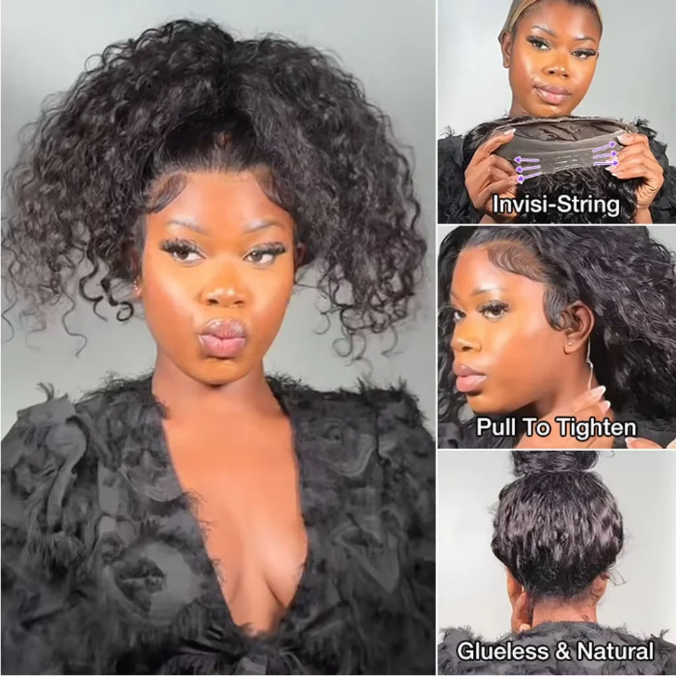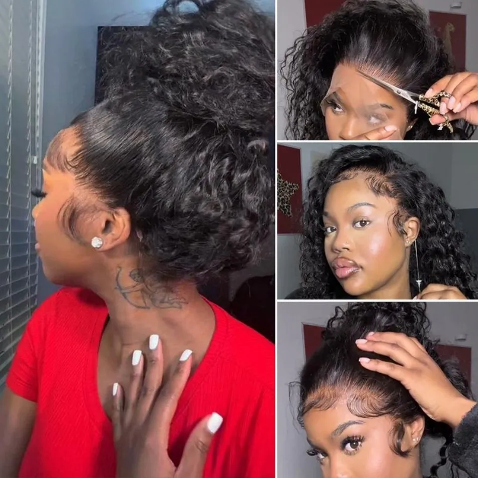360 Full Lace Wig Invisible Drawstring Deep Wave Frontal Wig Curly Human Hair Wigs Brazilian 13X4 Hd Lace Wig 220 Density 30Inch