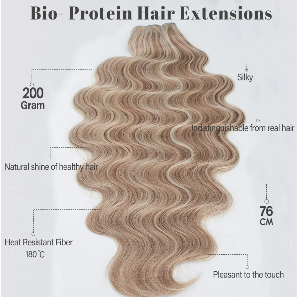 Honey Blonde Bio Body Wave High Tempreture Synthetic Hair Extensions 200gram 30inches Soft Natural Fiber Protein Hair Bundles
