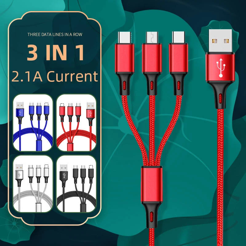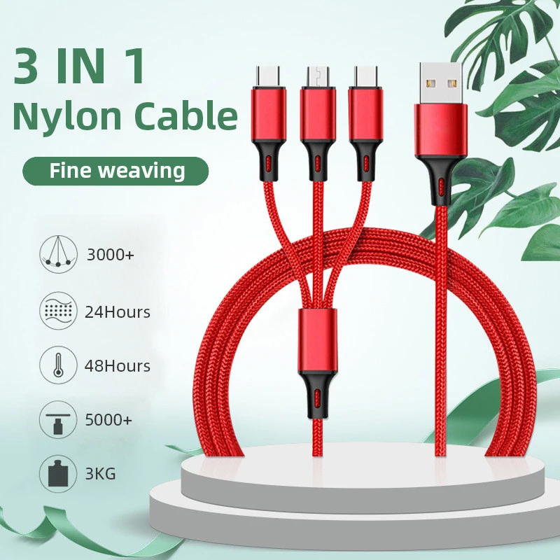 EONLINE Hot Sale 3 in 1 Charger Cable Micro USB Type C Multi USB Port Charging Cable USB Phone Cable