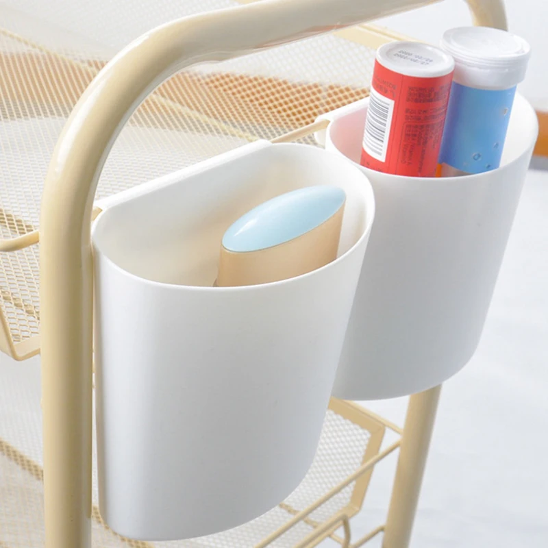1.Thickened Plastic,The hanging storage containers are made of thick plastic, with smooth edges. The hook design allows you to easily hang it on a cart or hook.