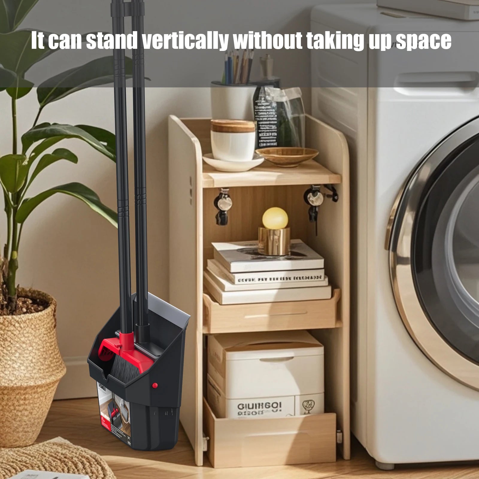 Dustpan can be folded and placed vertically to save storage space.