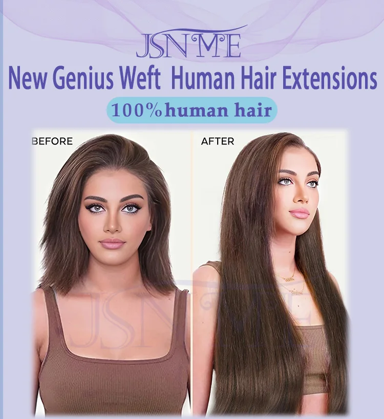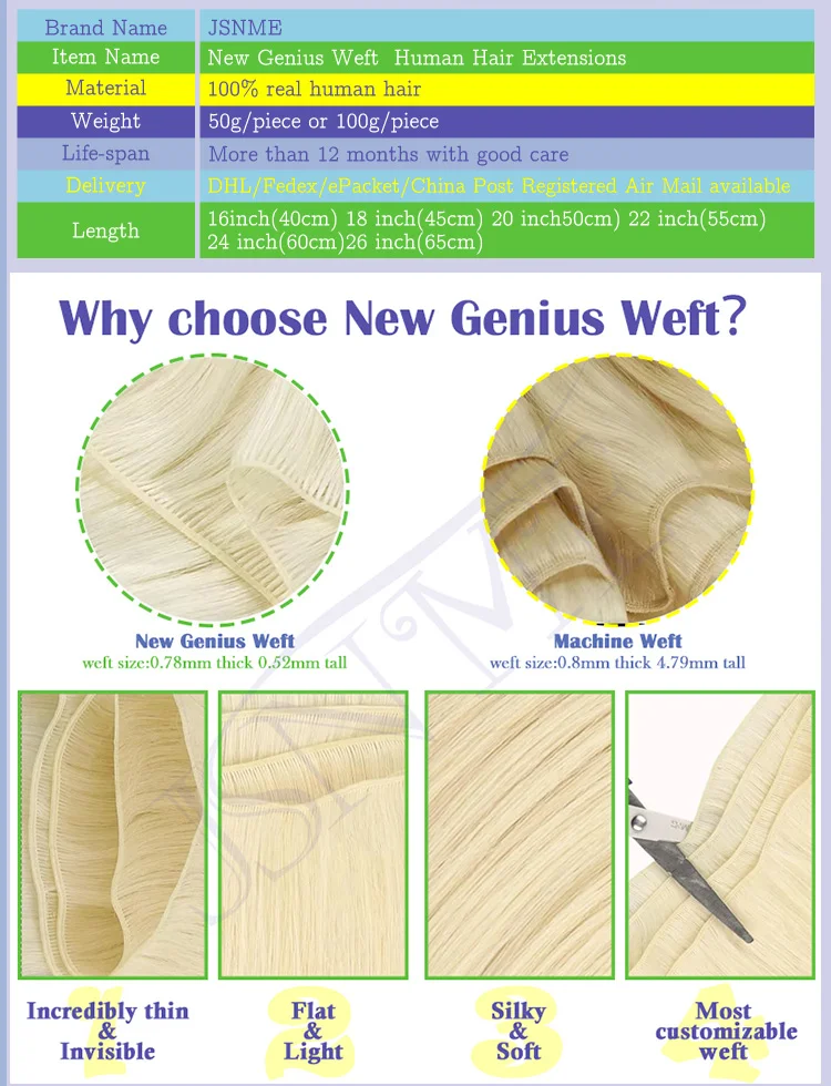JSNME Genius Wefts Extensions 100% Real Human Hair Weft Bundles Sew In weaving Extensions Brown Blonde Can Curly For Woman