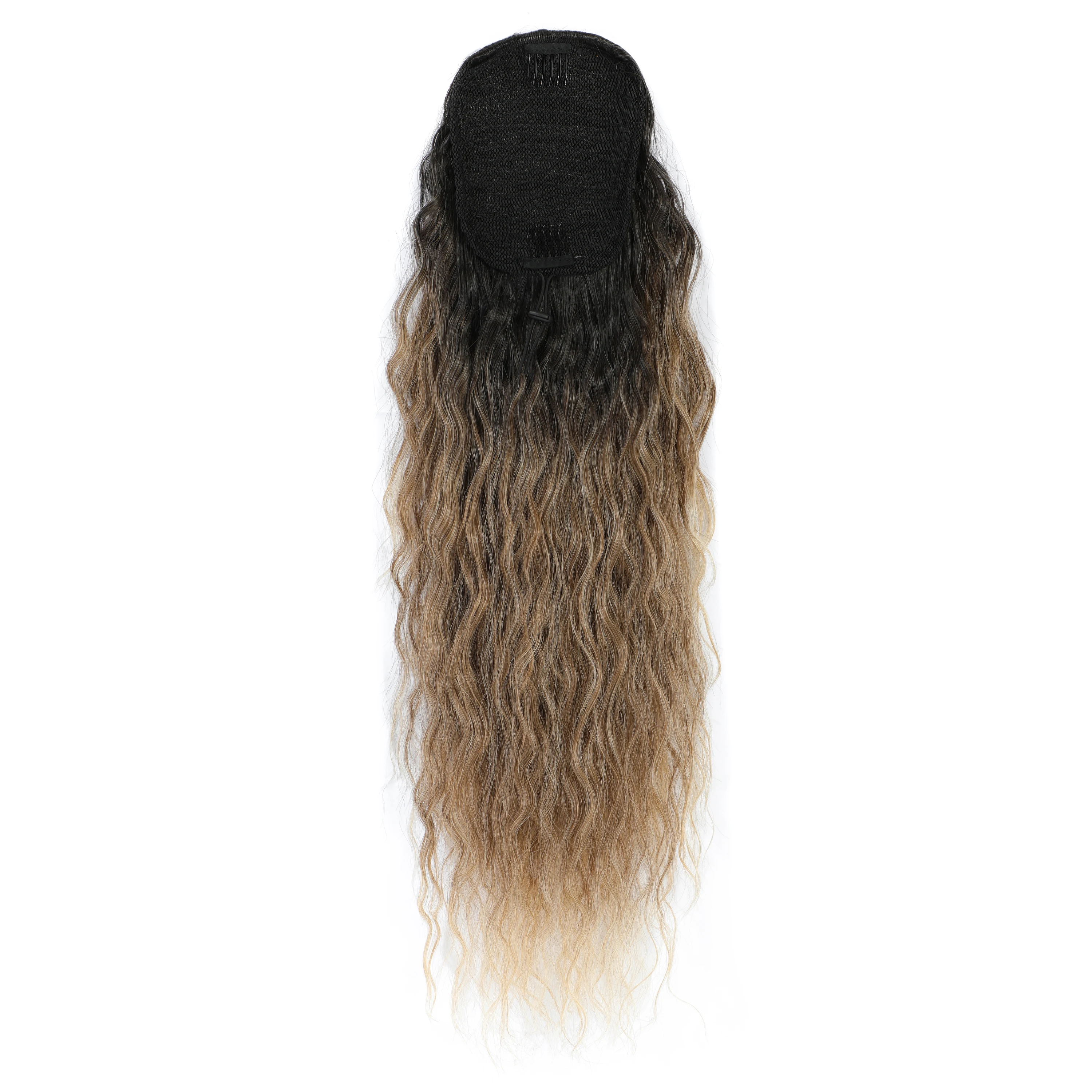 Drawstring Ponytail Extension Synthetic Heat Resistant Fiber Ombre Blond 28inch Long Hollywood Water Body Wave Clip in Hair