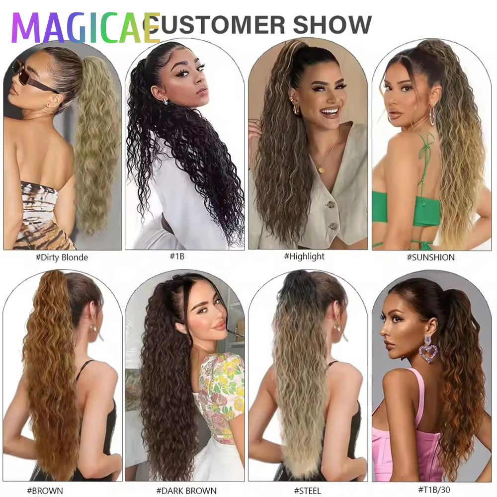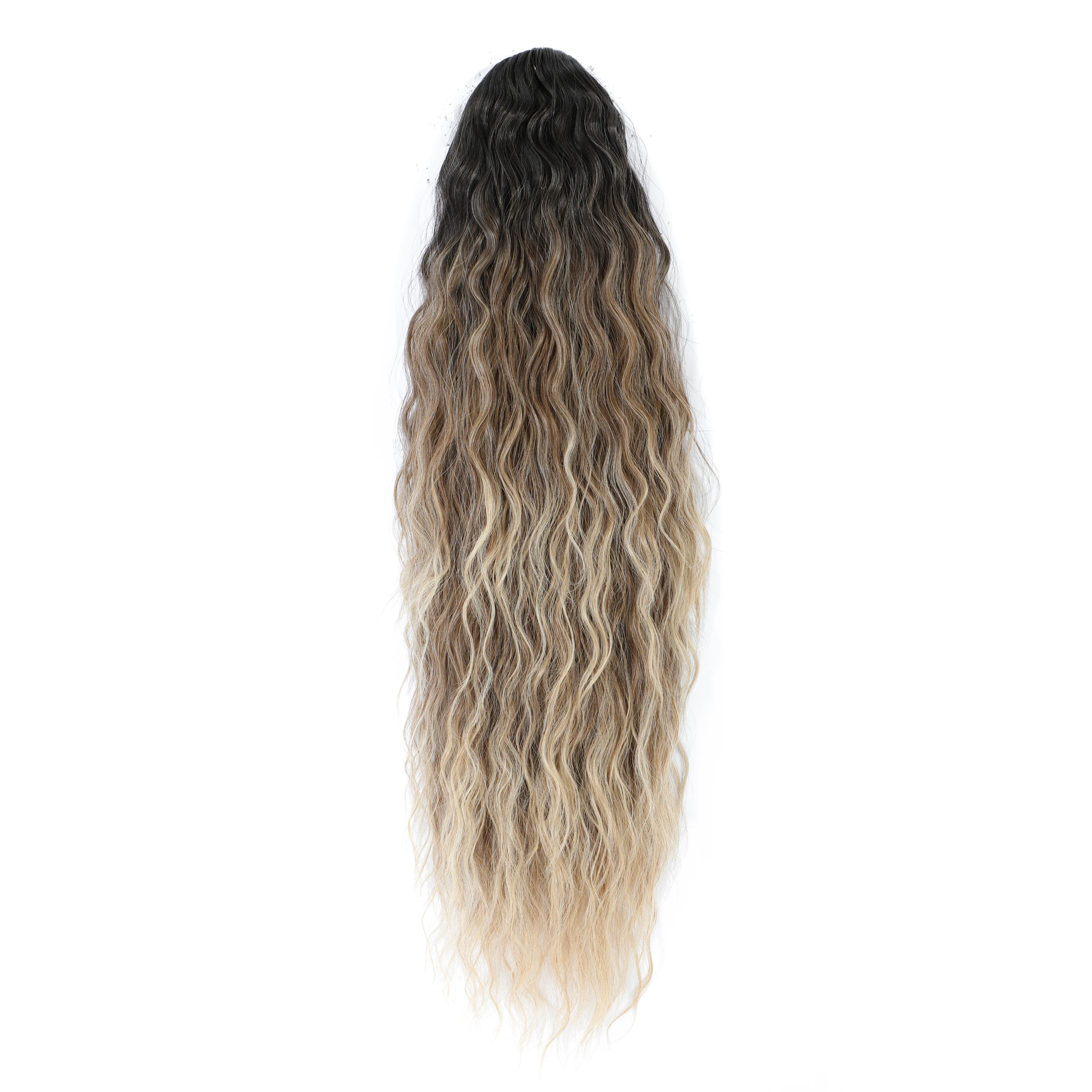 Magicae Drawstring Ponytail 28Inches 180Gram Blond 613 Water Wave Synthetic Heat Resistant Fiber Ombre Brown Highlight With Clip