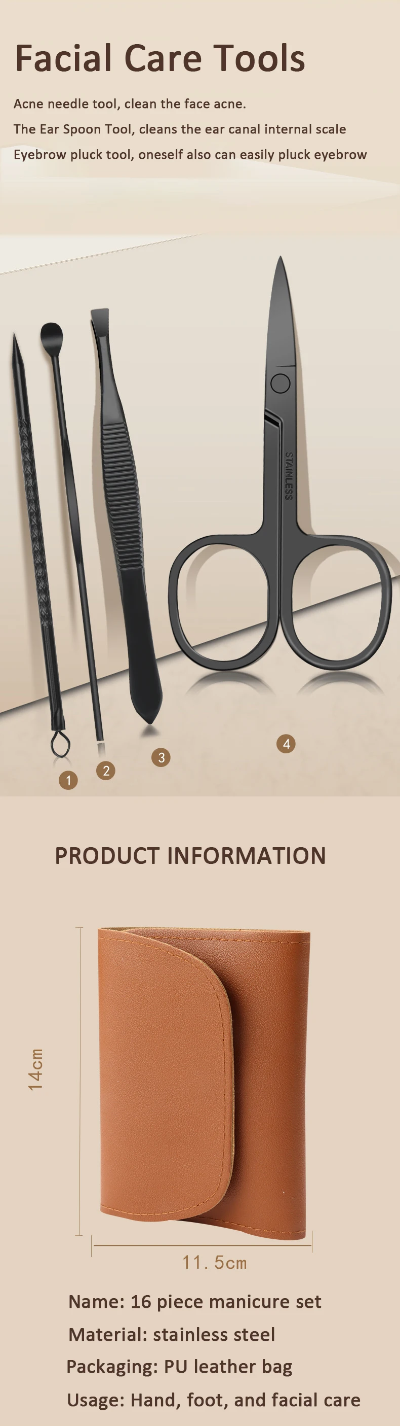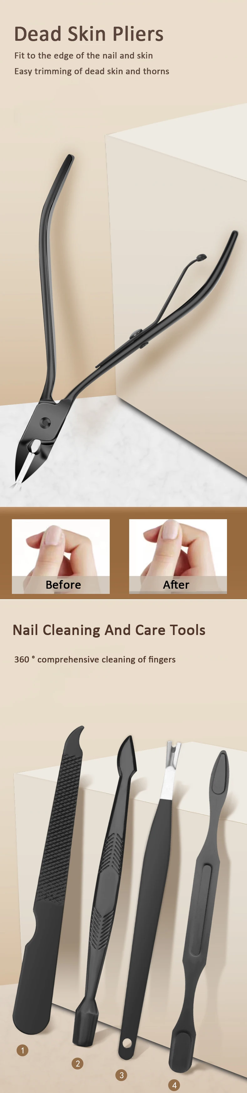 Our manicure set is a comprehensive collection of essential tools. From clippers for precise nail trimming to files for shaping, and cuticle pushers for a clean - cut look, it has everything you need for a complete nail care routine. No more hunting for individual tools; everything is neatly packaged in one set.
