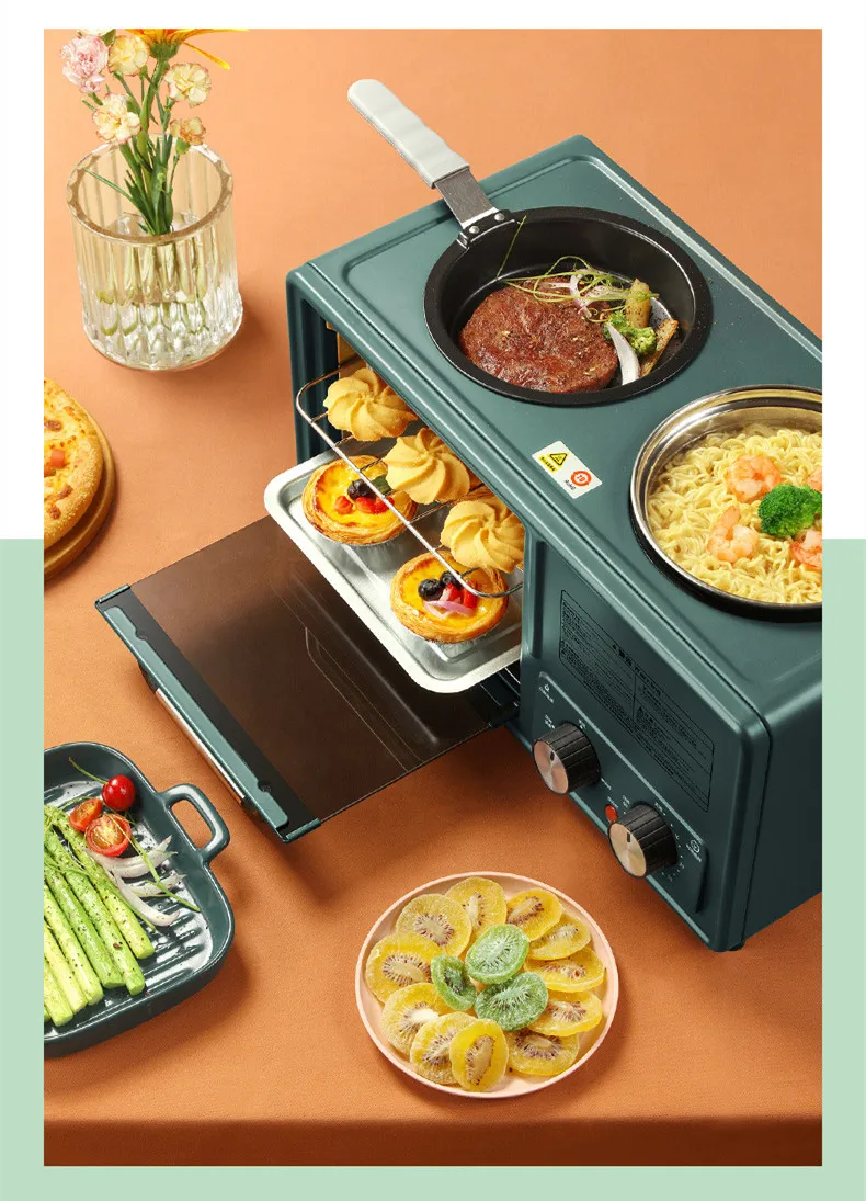 New Three-in-one 4 in 1 Breakfast Machine Multifunctional Electric Oven Bread Pizza Cake Machine Toaster Oven