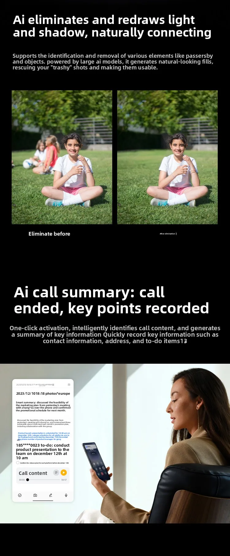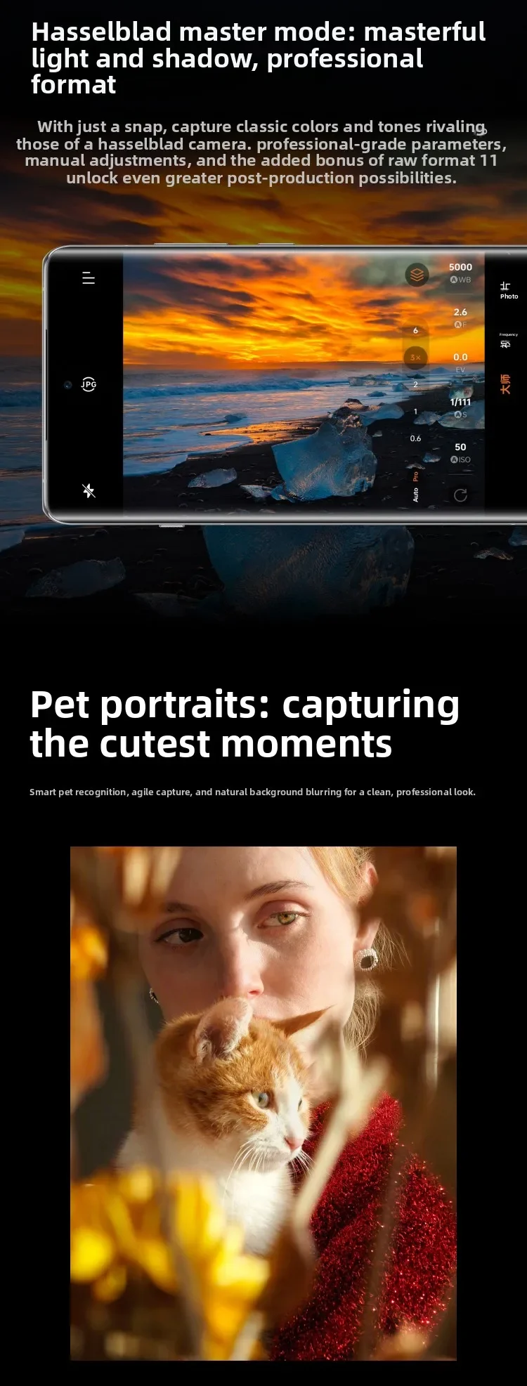 Algorithm: Equipped with Hasselblad mobile imaging system, natural color adjustment, supports professional mode and a variety of creative shooting functions.