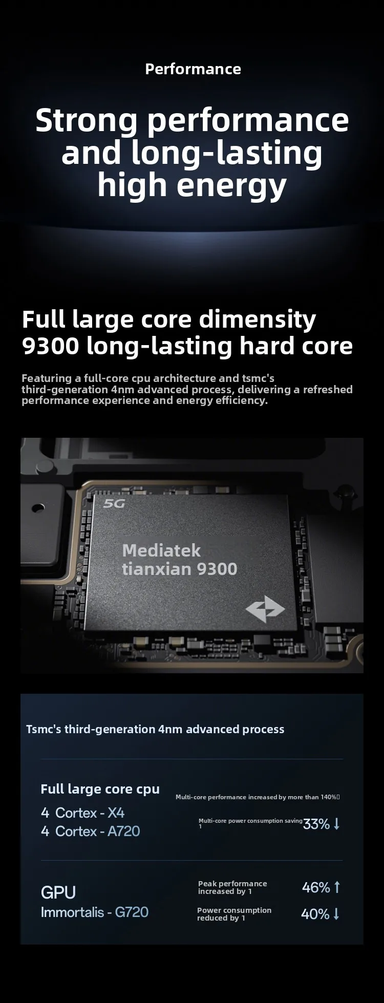 Processor: Equipped with MediaTek Dimensity 9300 chip, paired with LPDDR5X memory + UFS 4.0 storage, its performance is in the first echelon of Android flagships.