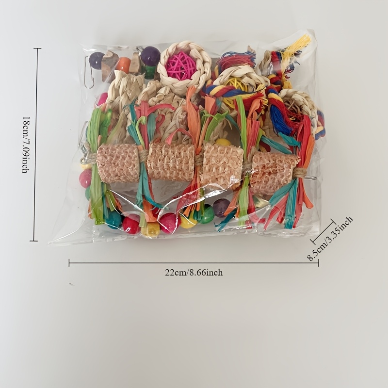 Parrot Toy Combo Set, Colorful Bead Swing, Fabric Rope Chew Toys, Bird Perching Habitat, Durable Biting and Grinding Vine Ball, Multi-Functional Pet Accessories for Cockatiels and Parakeets