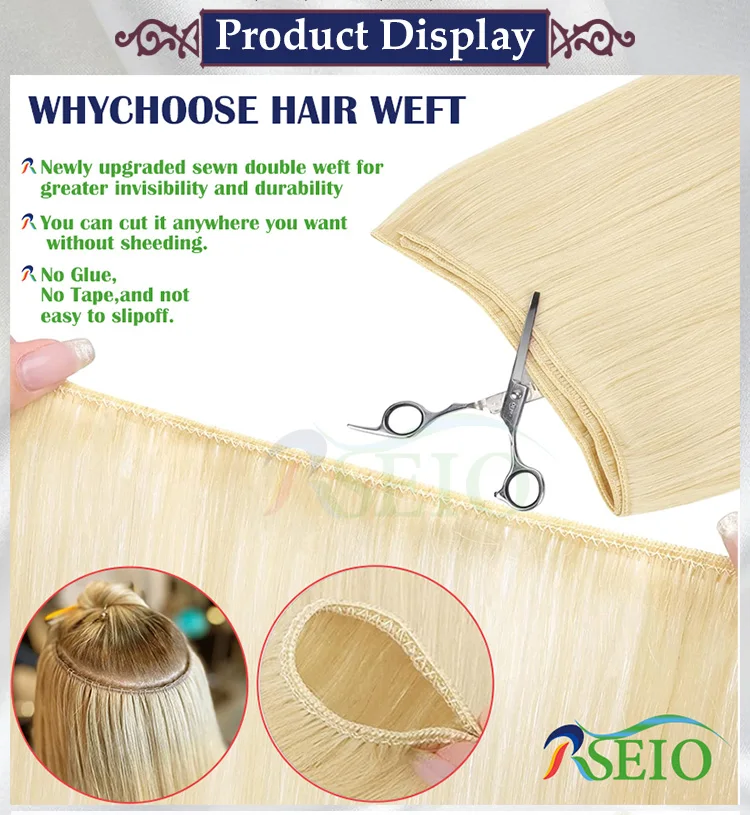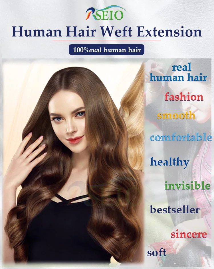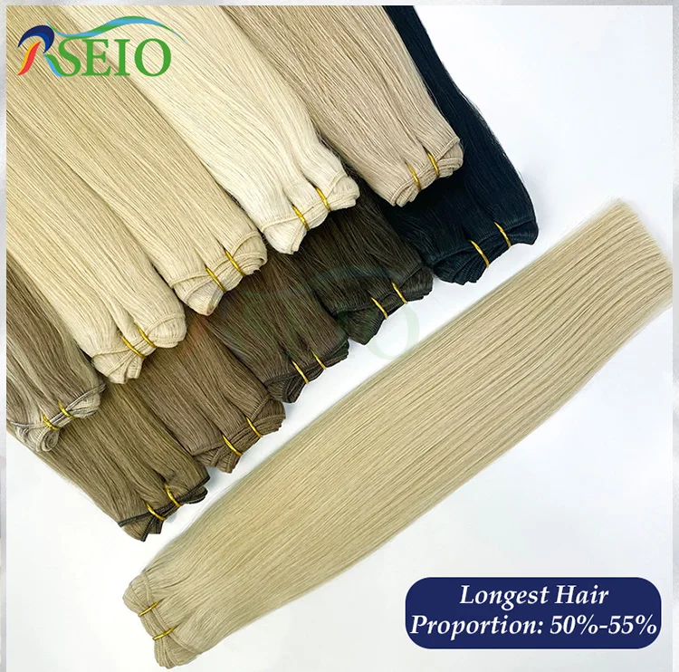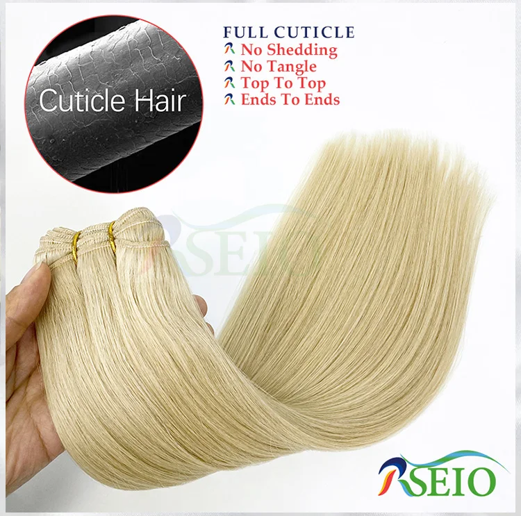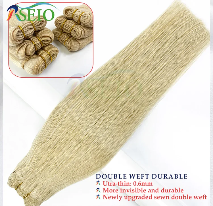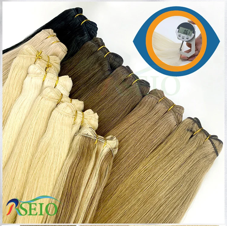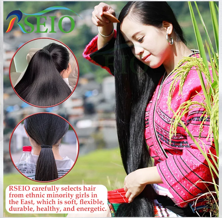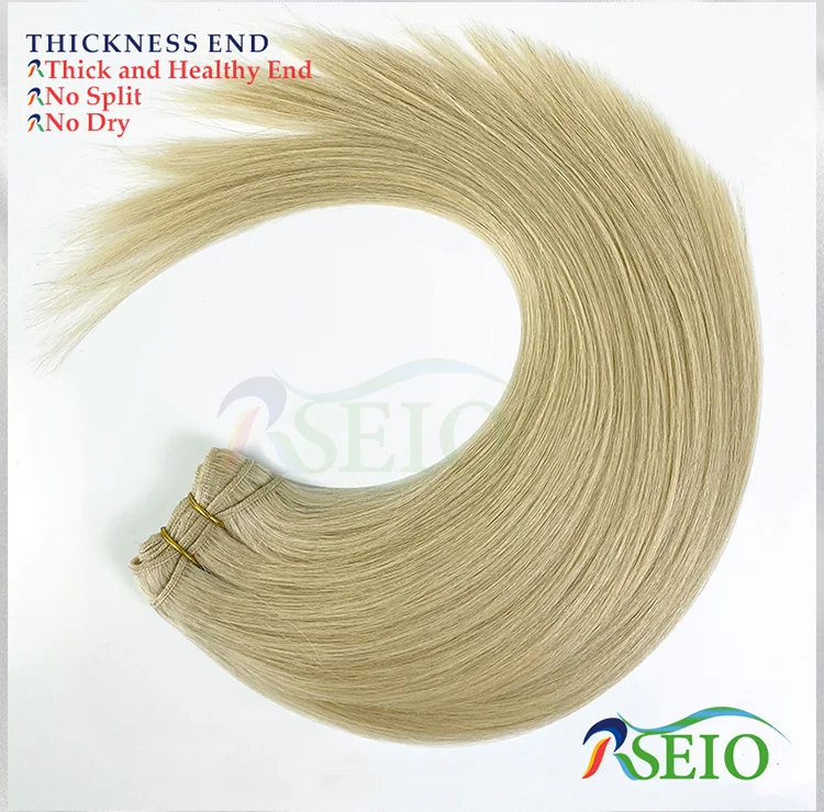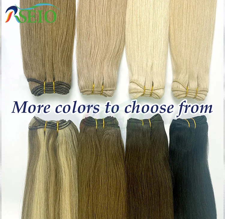 RSEIO High Quality Straight Human Hair Weft Bundles Very Thick European Remy Natural Real Human Hair Extension 14"-22" Can Curly
