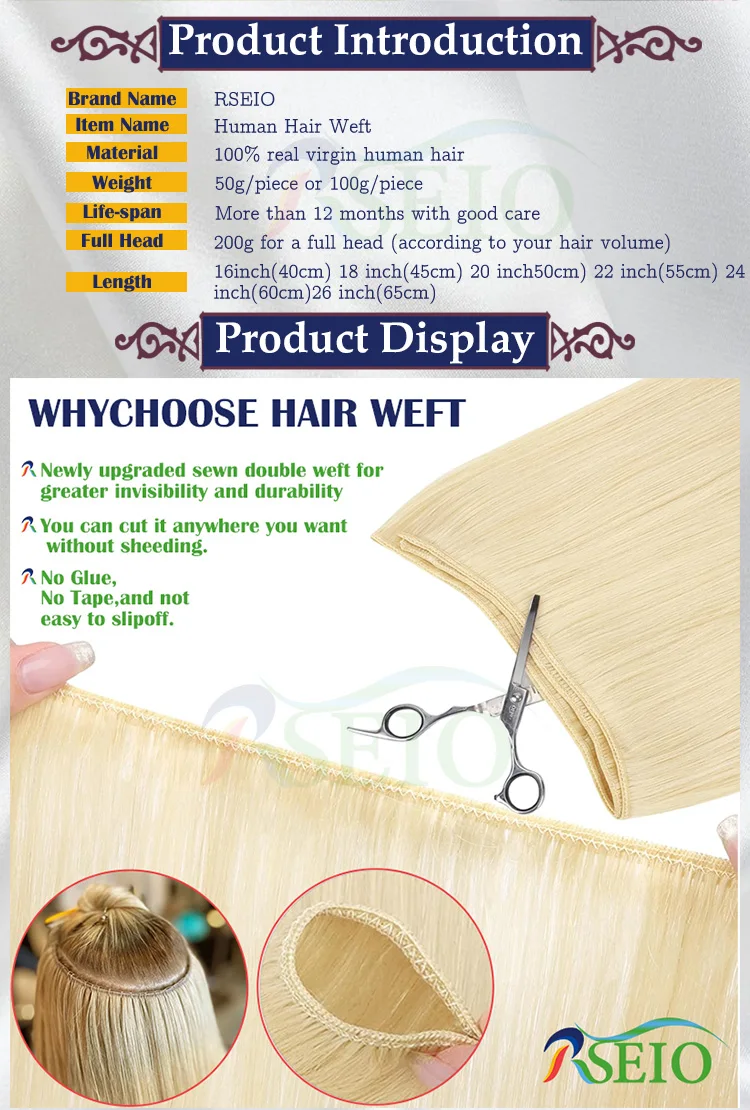 RSEIO Virgin Human Hair Wefts Extensions Hair Weaves Bundles Real Human Natural Hair Straight Black Brown Blonde very thick