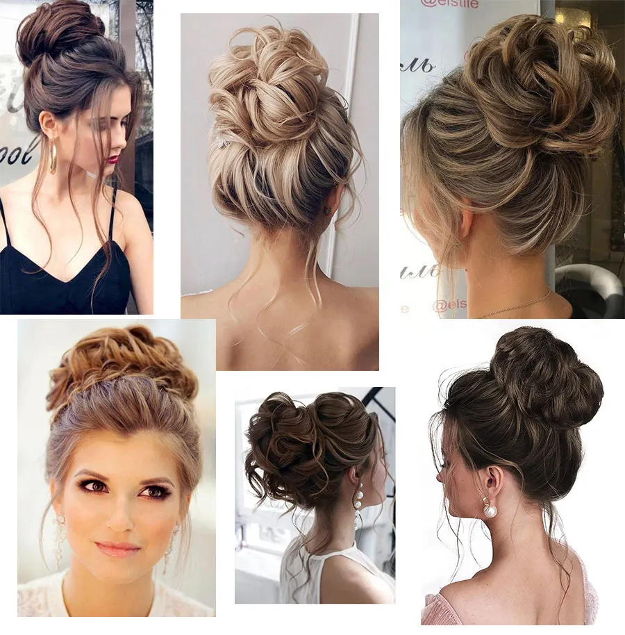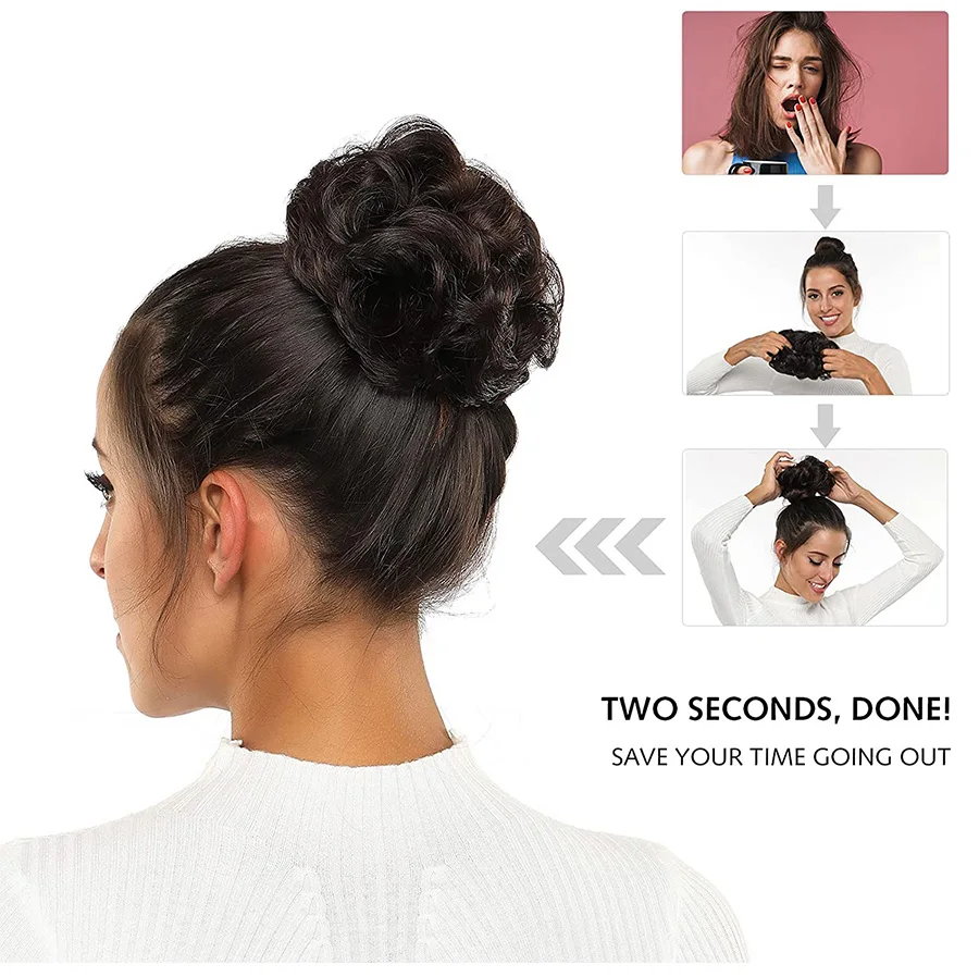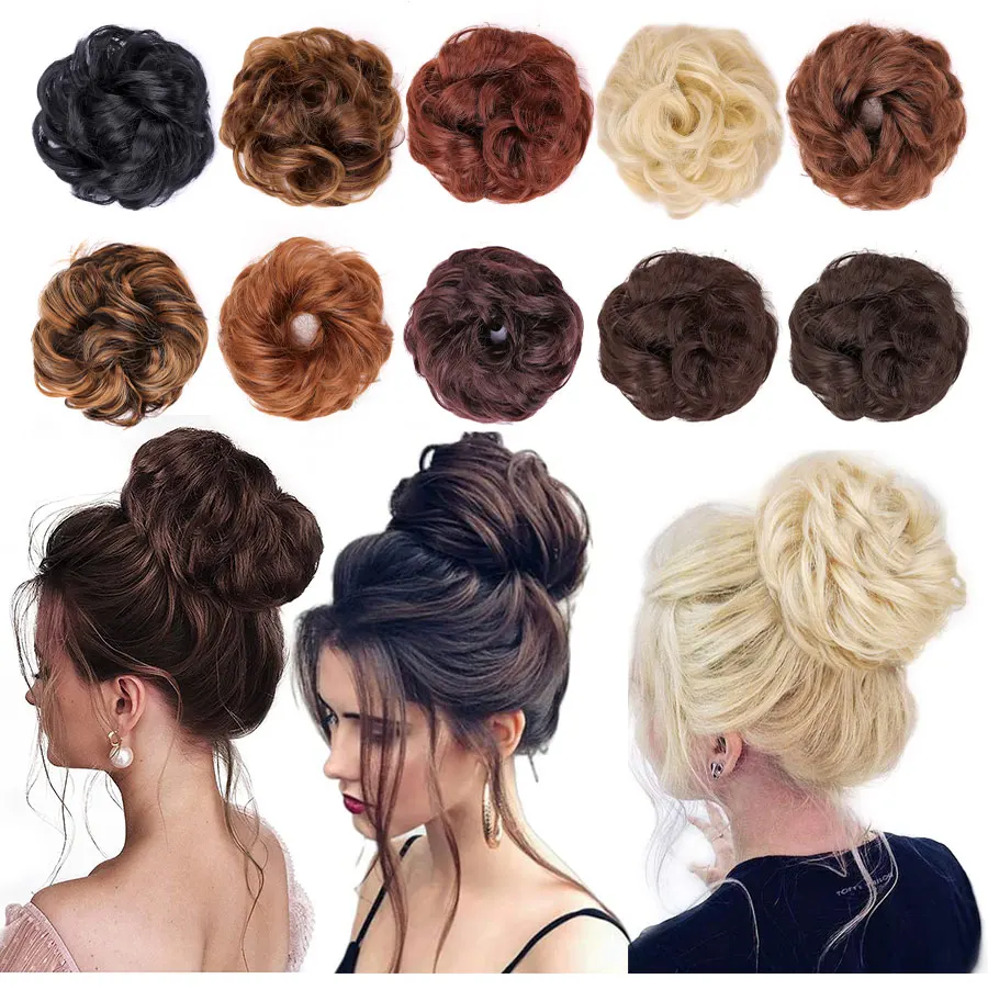 Synthetic Elastic Curly Hair Buns Chignons Hair Scrunchy Extensions Wrap Ponytail Updos Tousled Bun Hairpieces For Women Girls